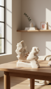 Fabriquée artisanalement, cette bougie décorative séduit par ses formes organiques et son esthétique minimaliste. Chaque détail évoque la douceur d’un moment à deux, loin des codes traditionnels, pour une décoration romantique et contemporaine.