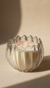 Une splendide bougie en verre de haute qualité, délicatement décorée de pierres de quartz rose, symbole d’amour, de tendresse et de bienveillance. Chaque bougie est fabriquée artisanalement, alliant luxe et élégance, pour créer une atmosphère romantique et apaisante. Le quartz rose est reconnu pour ses vertus favorisant l’amour de soi, l’harmonie dans les relations et l’ouverture du cœur. Sa flamme douce diffuse une lumière chaleureuse, invitant à la méditation, à la relaxation ou à des moments précieux partagés à deux. Une création idéale pour offrir ou pour se connecter à l’énergie de l’amour au quotidien.
