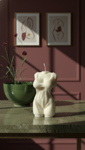 Apportez élégance et sensualité à votre intérieur avec la bougie Voile de Soie, un buste féminin sculptural où l’on devine les formes à travers un haut subtilement mouillé. Sa finesse et ses détails délicats évoquent douceur et sophistication, transformant cette bougie en un véritable objet d’art décoratif. Fabriquée à la main avec de la cire de haute qualité, elle diffuse une lumière chaude et apaisante, idéale pour créer une ambiance intime et raffinée. Parfaite pour décorer votre espace ou offrir un cadeau original et raffiné, cette bougie incarne l’alliance parfaite entre sensualité, délicatesse et esthétisme.